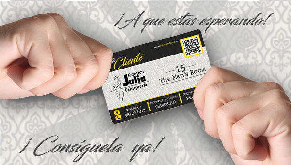 La tarjeta cliente es el Club de Fidelidad que Estética Julia ofrece a todos sus clientes, la adhesión al Club es totalmente gratuita y no supone ningún gasto para el cliente.